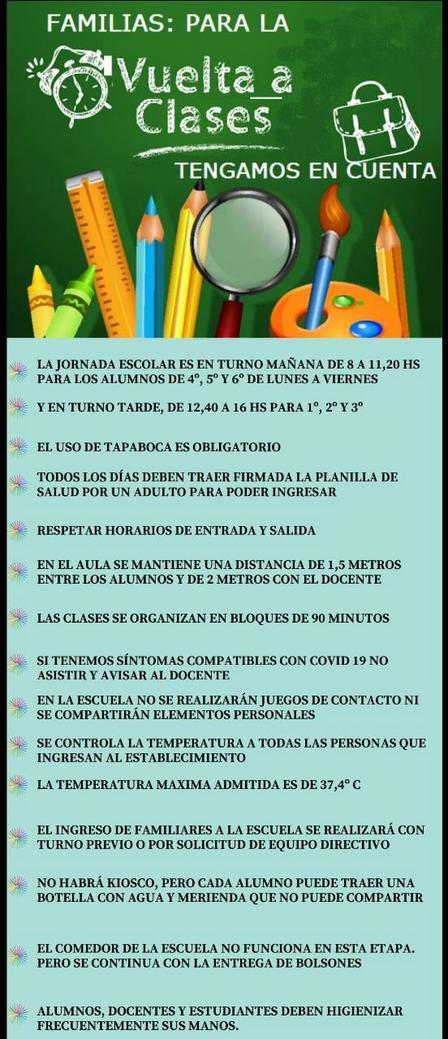 La Escuela 14 difundió el organigrama de actividades para la vuelta a la presencialidad