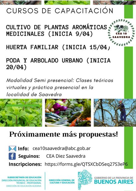 El Centro de Educación Agraria número 10 de Saavedra estará iniciando el 20 de abril la capacitación que será de 15 encuentros.
