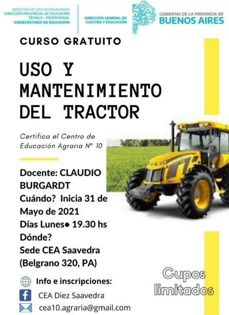 En instalaciones del Centro de Educación Agraria se llevará a cabo el curso 'Uso y mantenimiento del tractor', los lunes, desde las 19.30 horas.