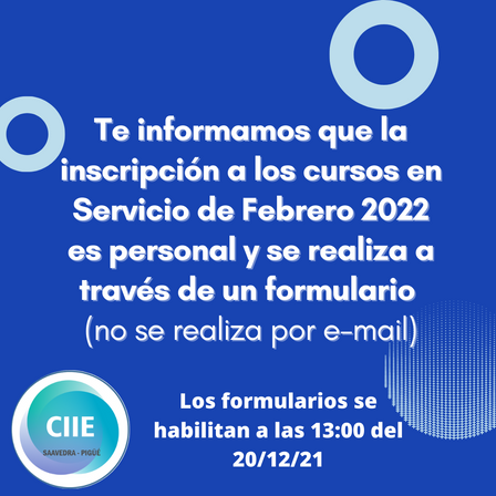La inscripción a los cursos en servicio de febrero 2022 es personal.