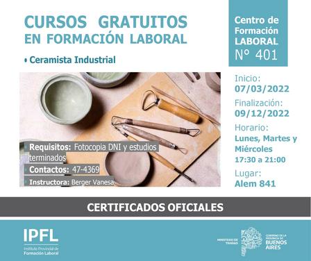El curso gratuito de ceramista industrial, a cargo de la Instructora Vanesa Berger, dará inicio el 7 de marzo próximo