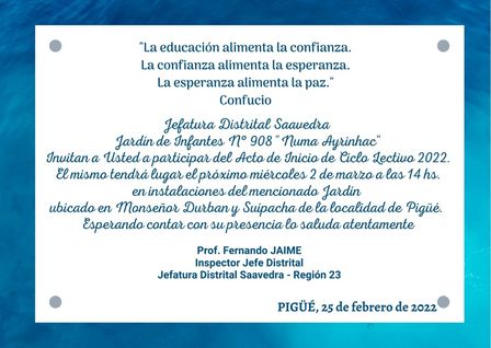 El Jardín 908 será sede del acto centarl de inicio de clases