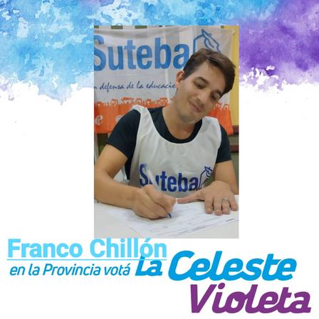 Franco Chillón, para las próximas elecciones de SUTEBA, irá como candidato a Secretario General Adjunto de la Lista Celeste en Saavedra y Celeste - Violeta en Provincia de Buenos Aires.