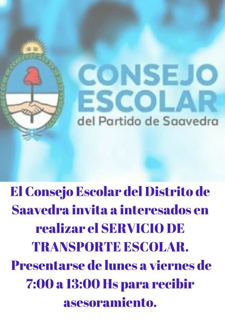 El Consejo Escolar se encuentra convocando a los interesados en ser proveedores de Transporte Escolar a inscribirse en sus oficinas.
