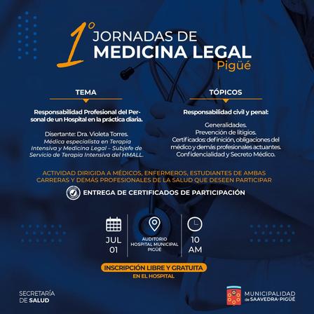 Estas Primeras Jornadas de Medicina Legal contarán con la presencia de la Dra. Violeta Torres que disertará sobre 'Responsabilidad profesional del personal de un hospital en la práctica diaria'.