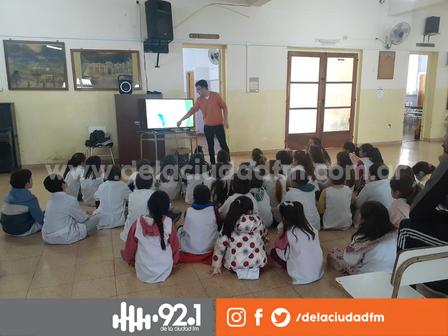 El Técnico Ambiental Nahuel Chauvié brindó una capacitación a todos los cursos de la Escuela Primaria N°1 de la localidad de Saavedra.