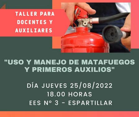 Hoy, día jueves, a partir de las 18.00 horas, Defensa Civil Municipal, los Bomberos Voluntarios de Saavedra, y el Consejo Escolar, realizarán una charla taller sobre 'El uso y manejo de matafuegos y primeros auxilios'.