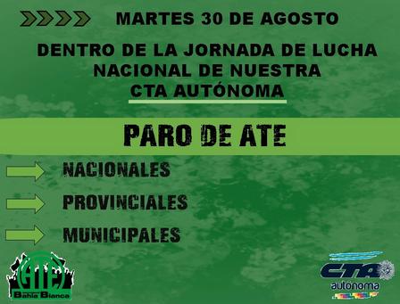 Este martes, hoy, dentro de la jornada nacional de protesta de la CTA Autónoma, los afiliados locales de ATE desarrollarán una medida de fuerza.