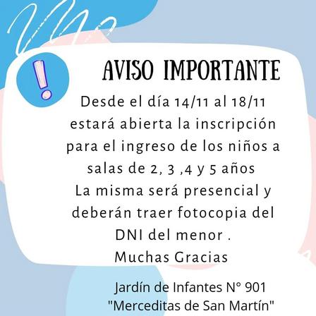 A partir del lunes de la semana que viene, hasta el día 18 de noviembre inclusive, estará abierta la inscripción para los pequeños de las salas de 2, 3, 4 y 5 años.
