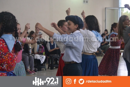Integrantes del Taller de Folklore impulsaron la puesta en escena con música en vivo y danzas para celebrar el Día de la Tradición en el establecimiento educativo de calle Güemes 123 de la ciudad.