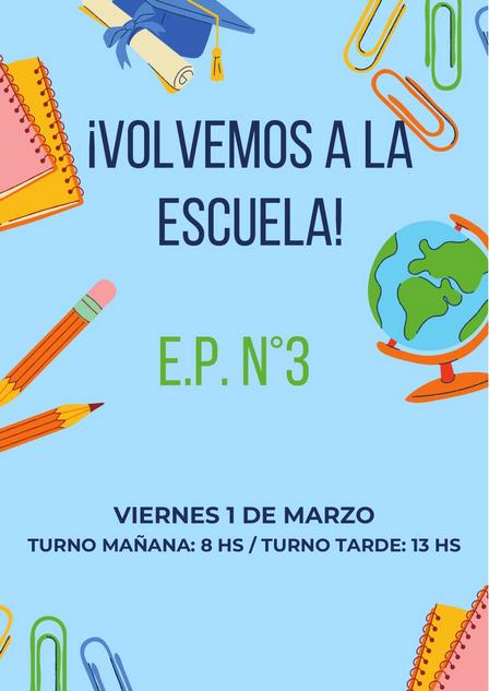 La Escuela 3 de Pigüé difundió el horario del inicio de su ciclo lectivo