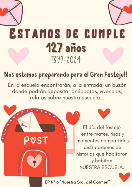 La institución educativa, en el sector de acceso a su edificio, colocó un buzón para recibir, de parte de quienes lo deseen, mensajes con anécdotas, vivencias, y relatos acerca de la Escuela 6 Nuestra Señora del Carmen de Arroyo Corto.