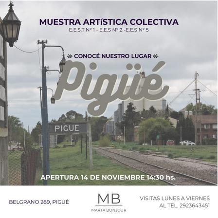'Conocé nuestro lugar: Pigüé' es el título de la exhibición que tendrá desde dibujos hasta collages que estarán llevando a cabo alumnos de la Escuela de Educación Secundaria Técnica Número 1, la Escuela de Educación Secundaria Número 2 y la Escuela de Educación Secundaria Número 5 de la ciudad.