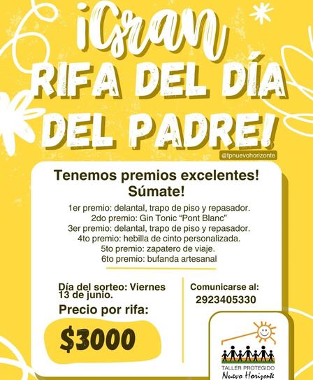 Este bono contribución del Taller Protegido Nuevo Horizonte de Pigüé puede solicitarse a través del 2923 40 53 30.