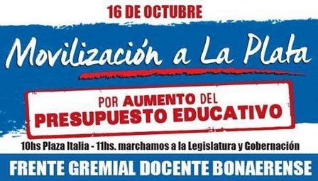 Los docentes nucleados en el Frente Gremial Docente Bonaerense marcharán este jueves a la Legislatura y a la Gobernación Provincial.