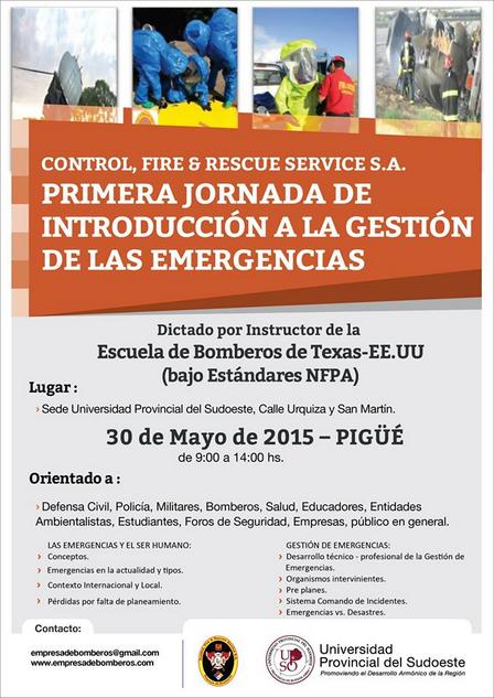 La Universidad Provincial del Sudoeste será sede de la Primera Jornada de Introducción a la Gestión de las Emergencias.