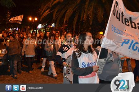 La marcha tuvo lugar el viernes por la noche, sobre las calles céntricas de la localidad, contando con la presencia de maestros locales.