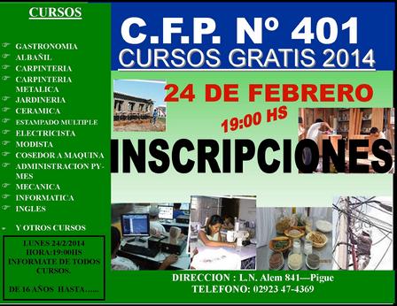 En las oficinas de calle Alem 841 de Pigüé uno podrá interiorizarse acerca de los diversos cursos a dictarse en el 2014.