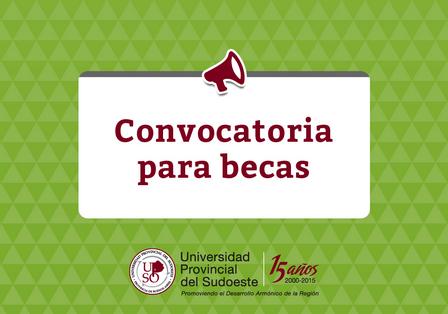 La Universidad Provincial del Sudoeste informa que hasta el 29 de febrero se encuentra abierta la convocatoria para la solicitud y renovación de Becas correspondientes al primer cuatrimestre del año 2016.