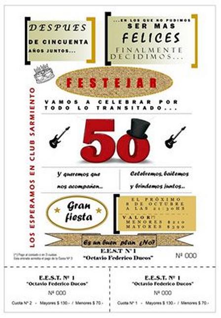 La cena de las Bodas de Oro de la Escuela Técnica se llevará a cabo el 8 de octubre, desde las 21.30 horas, y el acceso será de 210 pesos para menores, y de 390 pesos para mayores.