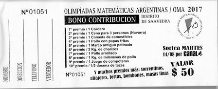Por un valor de 50 pesos es posible adquirir, para cooperar con los estudiantes que participarán de las OMA, un bono con diez premios.