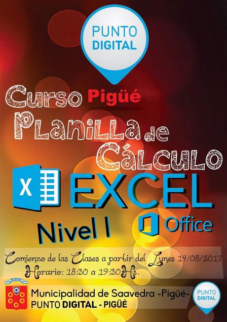 El curso de Planilla de Cálculo Excel estará dando inicio a partir del lunes 14 de agosto, a las 18.30 horas, en el Punto Digital.