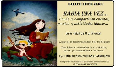 Dando inicio el 3 de octubre, la semana próxima, la docente Soledad Regueira estará al frente de un Taller Literario denominado 'Había una vez'.