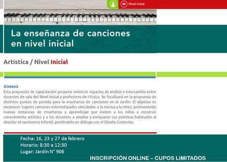 Ya están anotando para un nuevo curso en servicio de Nivel Inicial de Música.