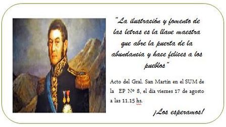 La Escuela Número 8 de Espartillar realizará un acto por el paso a la inmortalidad de José de San Martín.