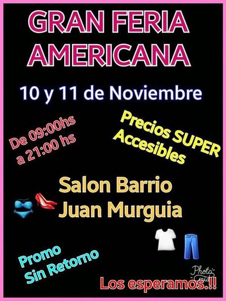 Se realizará, tanto el sábado, como el domingo, una feria americana a cargo de chicos de la Promo Sin Retorno, en el Salón de la Sociedad de Fomento del Barrio Juan Murguía.