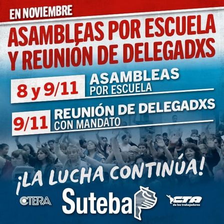 as asambleas de SUTEBA se llevan a cabo, por escuela, durante el día de hoy, jueves, y mañana, viernes.
