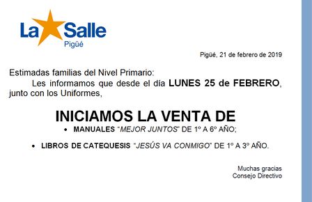 Para los chicos del Nivel Primario del Colegio La Salle comenzarán el lunes a vender los manuales y libros junto a los uniformes.