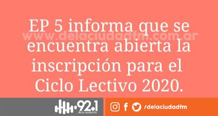 La Escuela Primaria Número 5 ya abiró el registro de inscripción para el ciclo 2020.