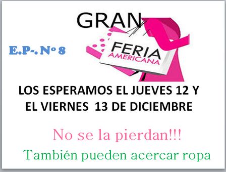 En Espartillar, para el jueves 12, y el viernes 13 de diciembre, se prevé la realización de la feria americana.