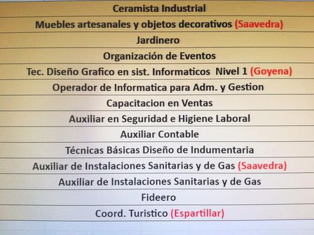 Ceramista industrial, auxiliar contable, jardinero, fideero, serán algunos de los cursos para el 2020.