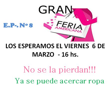 Anunciaron, para el viernes 6 de marzo, en la Escuela Número 8, la venta de una serie de artículos.
