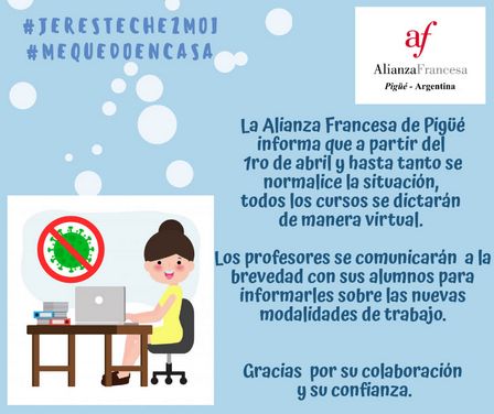 La Alianza Francesa confirmó que los cursos desde hoy se harán de manera virtual para los anotados.