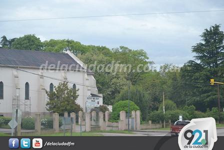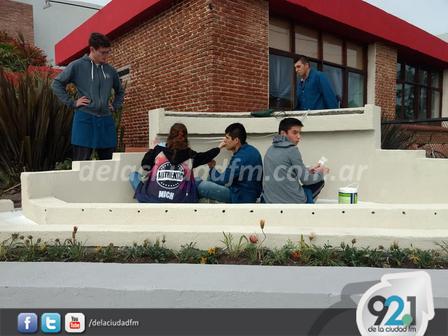 En la Escuela Técnica Número 1 de Pigüé colocaron las luminarias para la renovada fuente.