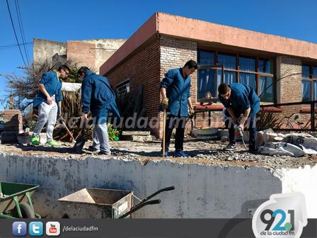 En la Escuela Técnica se encuentran realizando una serie de trabajos de remodelación sobre la fuente de agua ubicada en la esquina de calle Francia y Pellegrini.