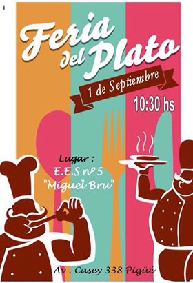 En FM de la Ciudad Agostina Vázquez manifestó que “esta feria del plato es el viernes, 1º de septiembre, a las 10.30 horas, en Avenida Casey 338, que es donde está la escuela, en la vereda, con pizzas, empanadas, piononos, panqueques, y tortas”.