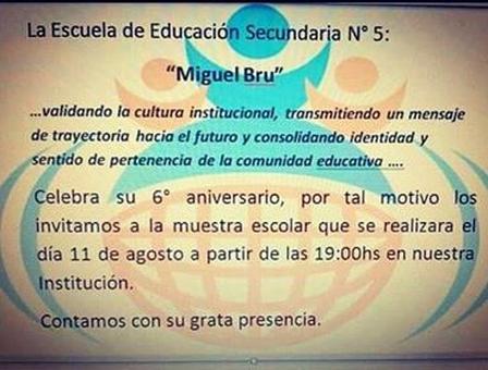 La Escuela 5 Miguel Bru realizó los festejos por el 6º año de su creación.