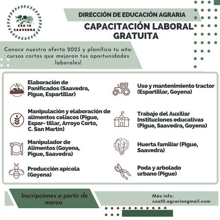 Cada uno de las capacitaciones se dictará en las localidades para las que se las ha asignado contando con un registro de inscripción que estará abierto en los próximos días.