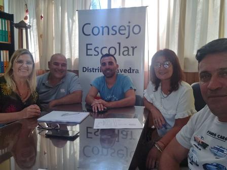 Los integrantes del Consejo Escolar se reunieron con el educador del distrito que recibió la Mención de Honor en el Programa "Docentes que Inspiran 2022".