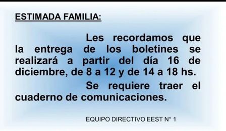 Los boletines en la Escuela Técnica Número 1 de Pigūé estarán entregándose de 8.00 a 12.00 horas y de 14.00 a 18.00 horas.