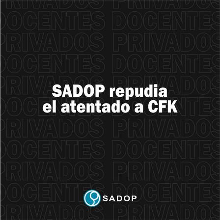 El comunicado expresa que “el Sindicato Argentino de Docentes Privados (SADOP) repudia el atentado y se solidariza con la Vicepresidenta de la Nación, Cristina Fernández, y exige a la oposición, medios y poder judicial bajar los niveles de confrontación política que afectan la vida institucional del país. La violencia política que vienen generando debe tener un límite.
