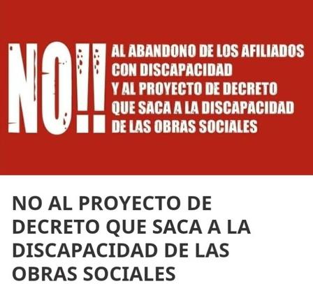 En un artículo que está dándose a conocer a través de sus redes manifiesta 'No al abandono de los afiliados con discapacidad y al proyecto que saca a la discapacidad de las obras sociales'.