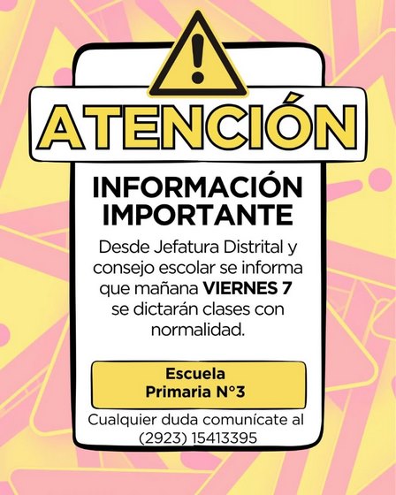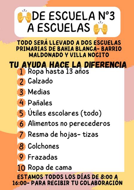 La Escuela 3 de Pigüé, en Alsina 76, recibe donaciones para luego trasladarlas, el jueves de la semana que viene, a las Escuelas Primarias del Barrio Maldonado y de Villa Nocito.