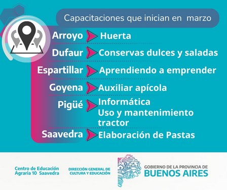 En el Centro de Educación Agraria N° 10 hay varias capacitaciones que recorrerán el Distrito de Saavedra durante el 2025.