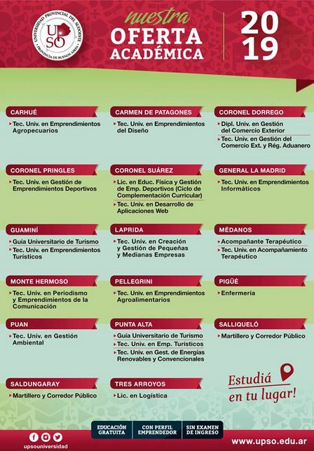La Universidad Provincial del Sudoeste está difundiendo la oferta educativa para el ciclo lectivo próximo.