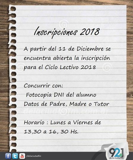 Está abierto el registro de inscripción para la Escuela Número 1 de Saavedra para el ciclo lectivo del 2018.